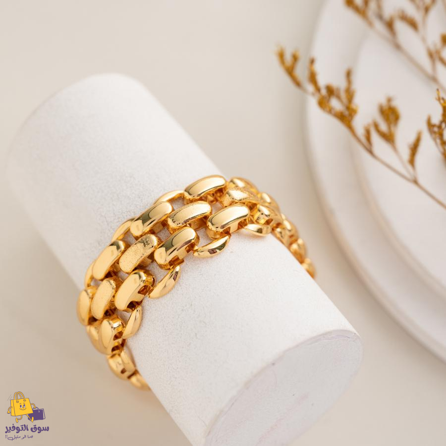 اسوارة جنزير عريض حلقات صغيرة ذهبي