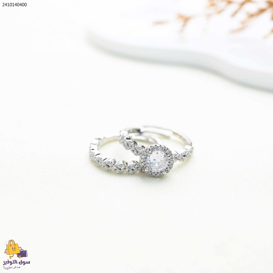 دبلة مع حجر دائري وزركون (اللون: فضي)