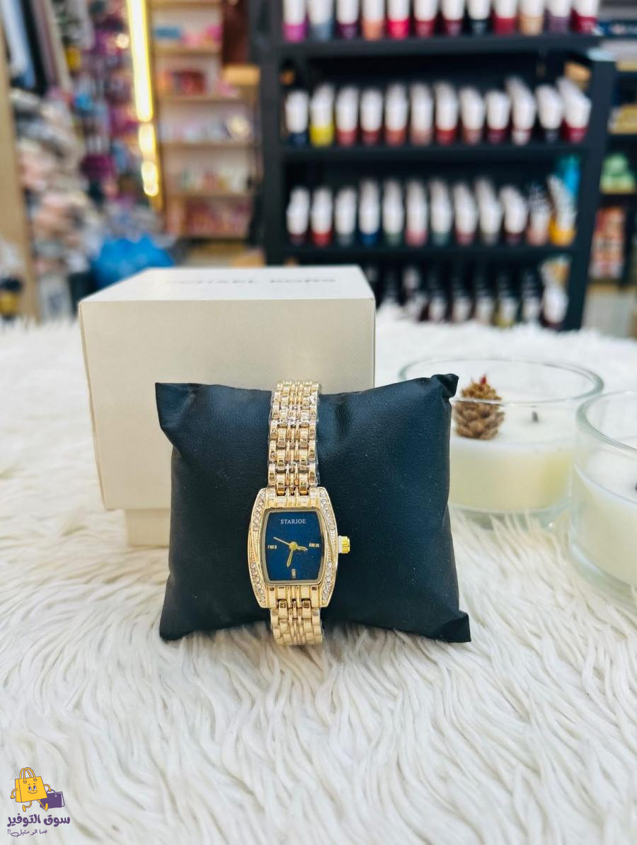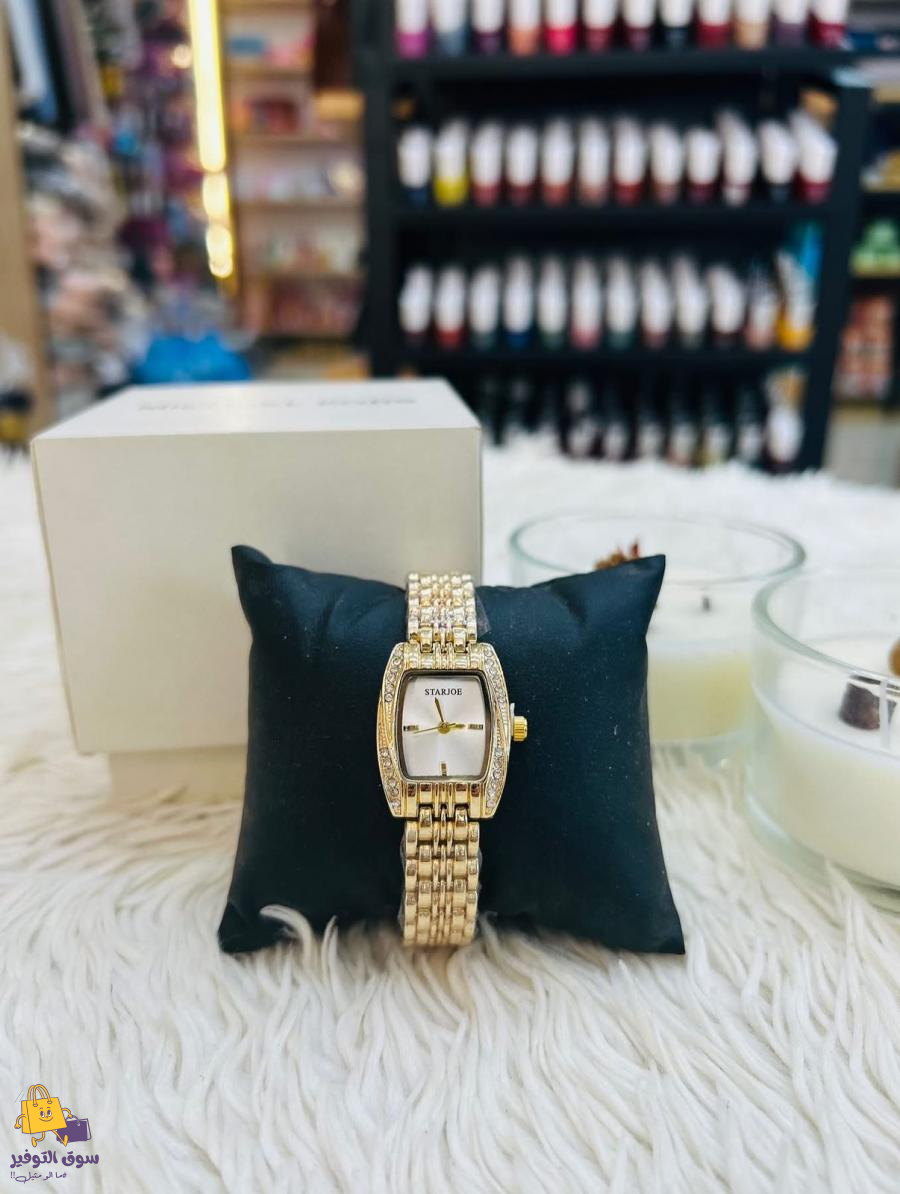 ساعة نسائية مستطيلة الشكل مع زركون - starjoe (اللون: فضي و اسود)