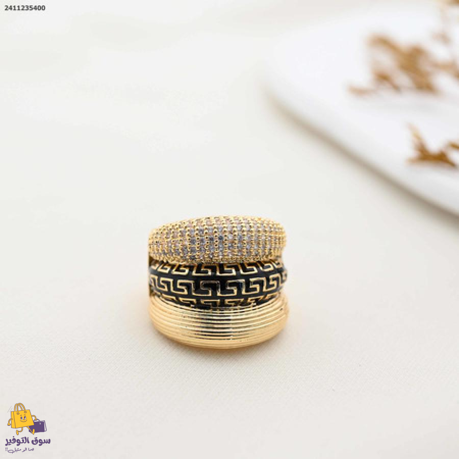 خاتم ثلاث طبقات مع نقش ماركة وزركون