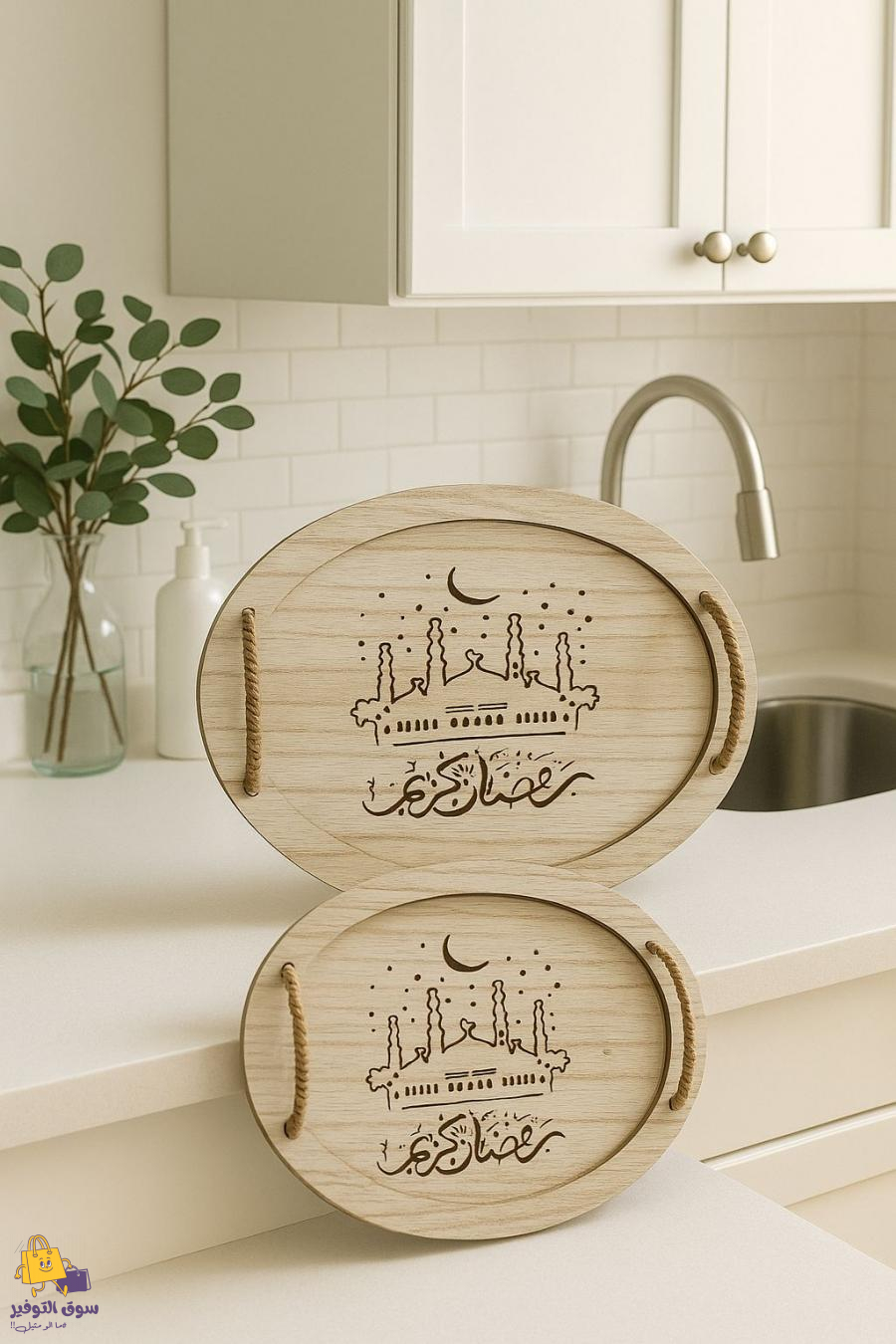 صواني رمضان خشبي بيضاوي ثقيل 2 صينيه 3-9