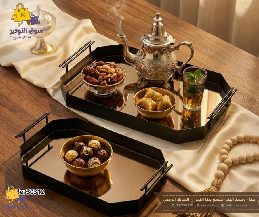 طقم صواني ضيافة مستطيل /2 معدن اسود وجه مرآه عسلي 53031