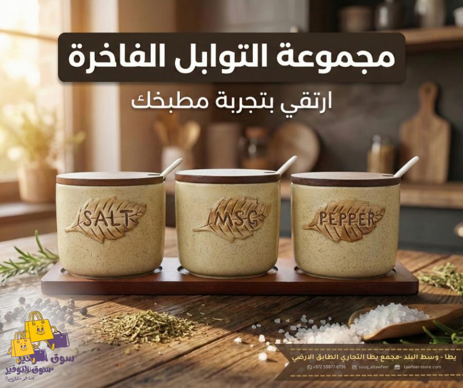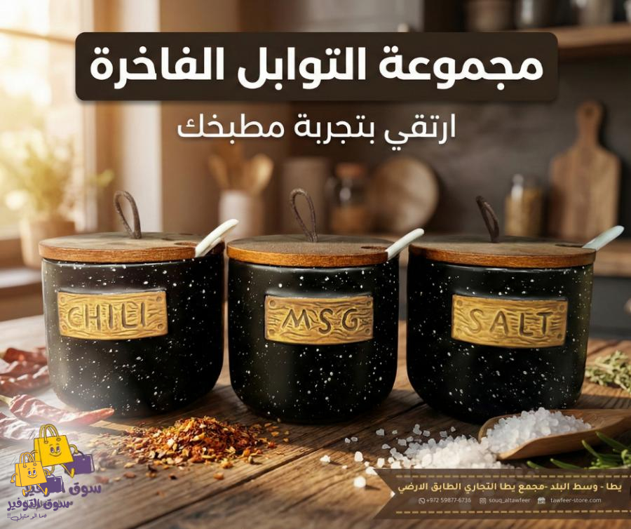 طقم بهارات بورسلان مع قاعدة خشب 3-78
