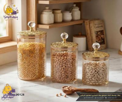 طقم علب بهارات ثلاثي فخم ابيض مذهب 2-2 الاحمد
