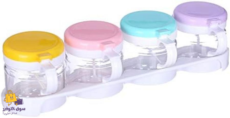 طقم توابل رباعي زجاج ملون مع قاعدة صغير83-20
