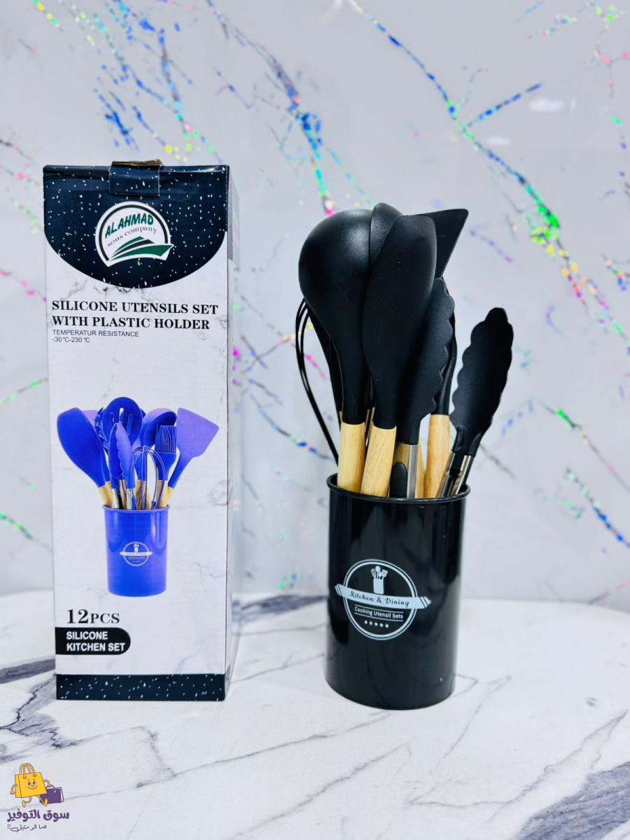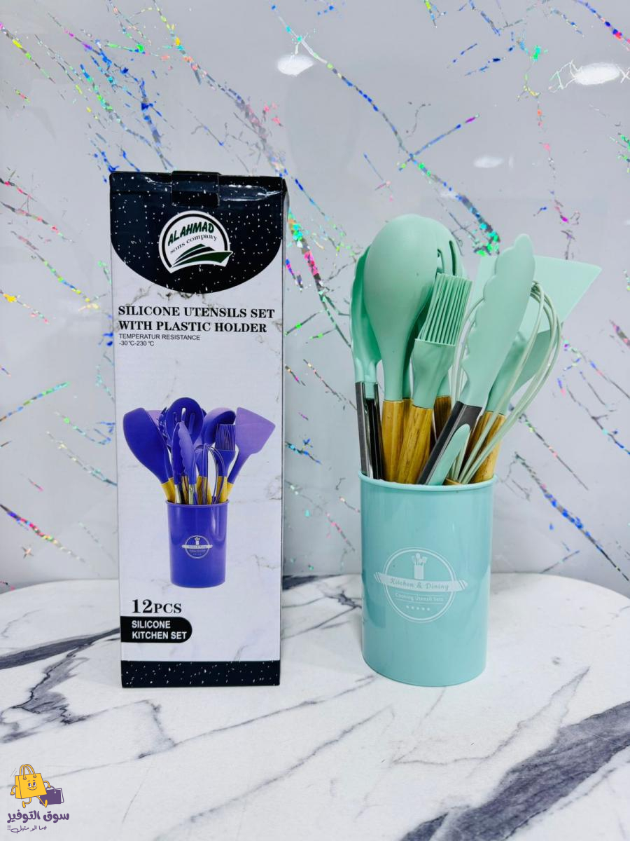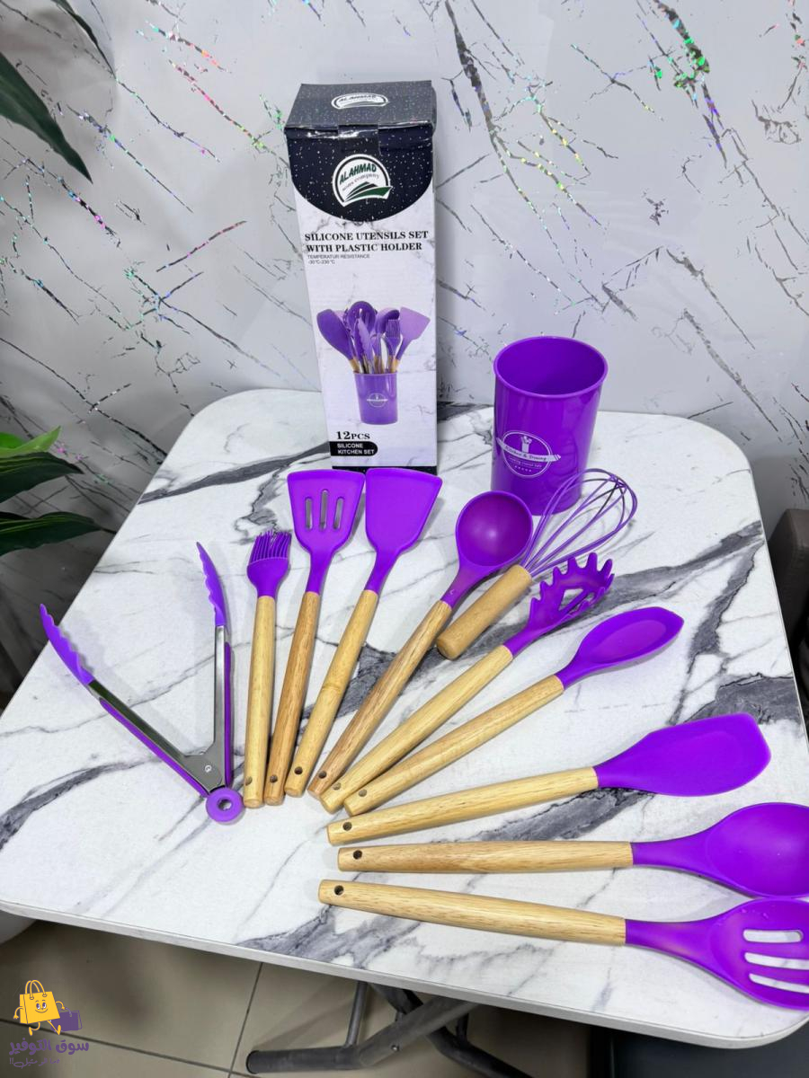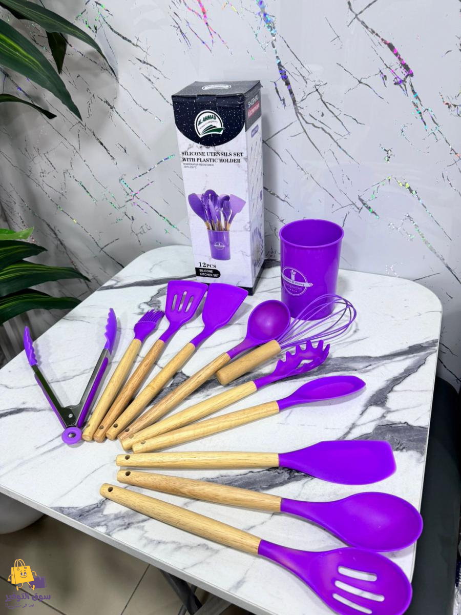 طقم مغارف مطاط 12 قطعة يد خشب