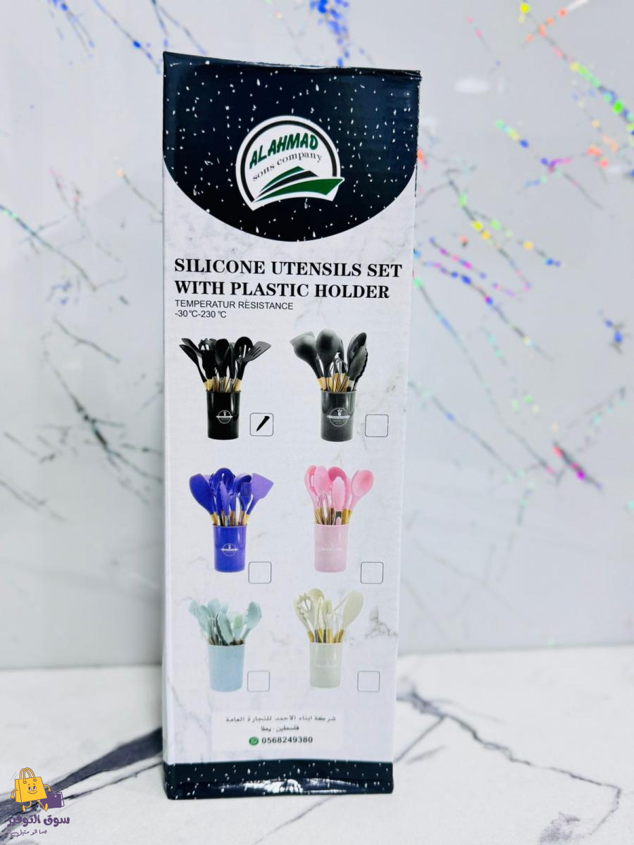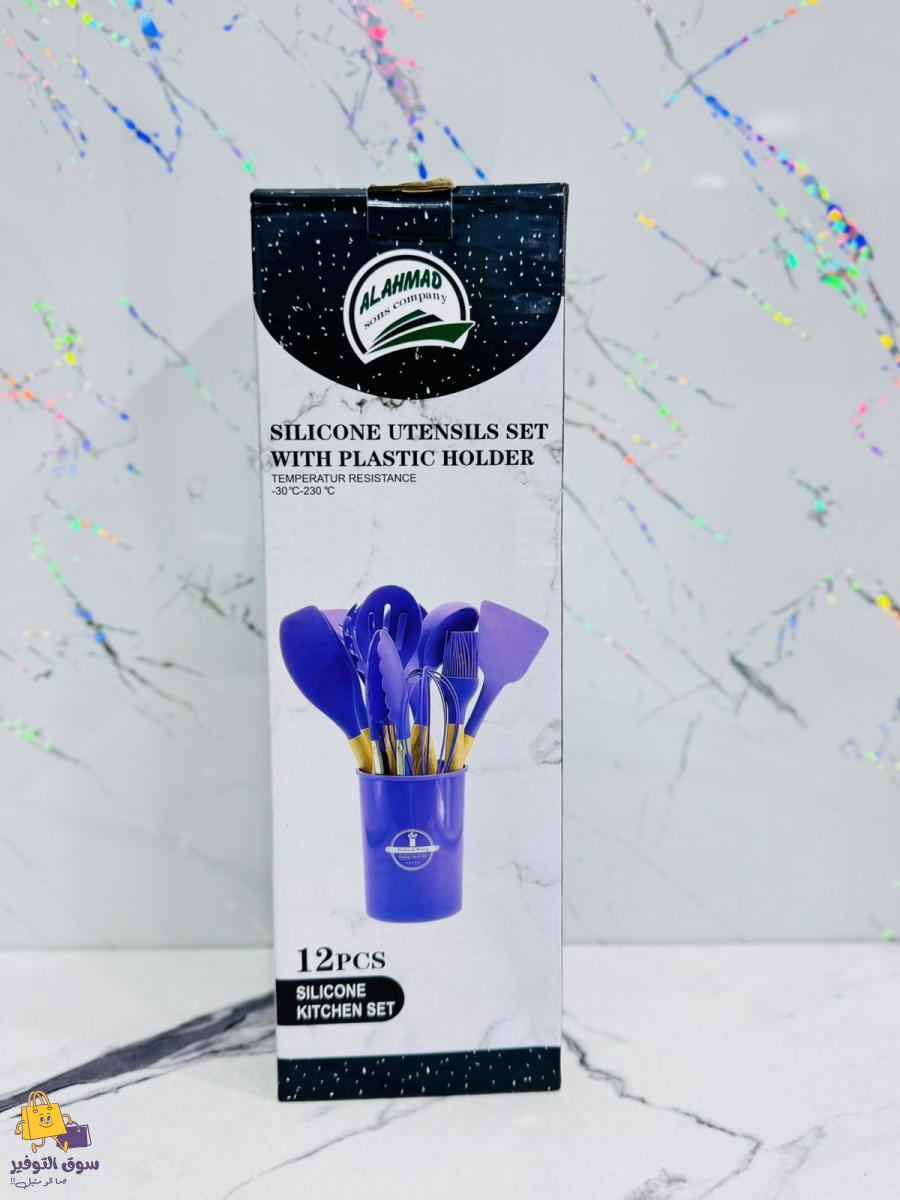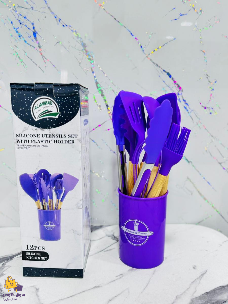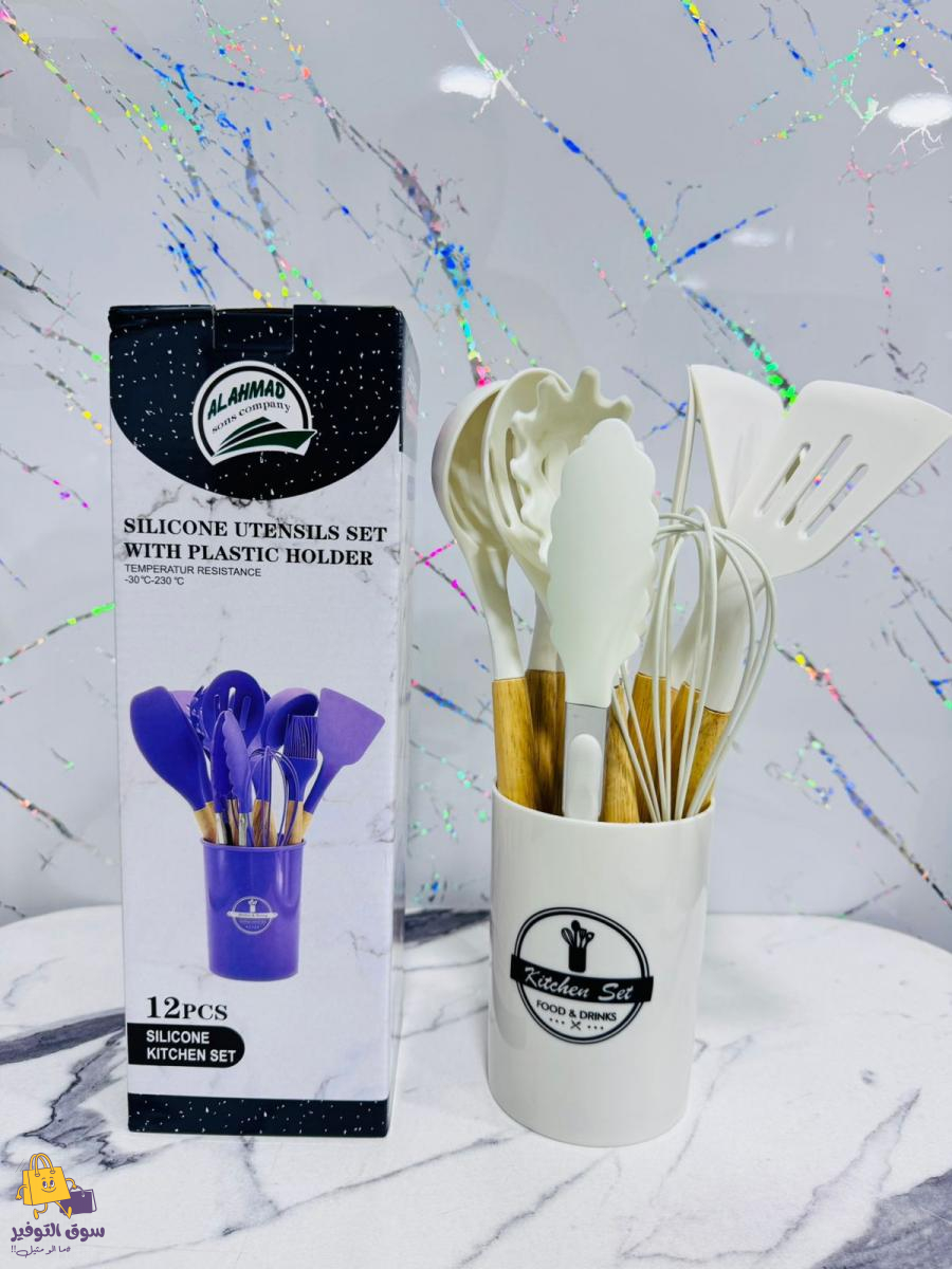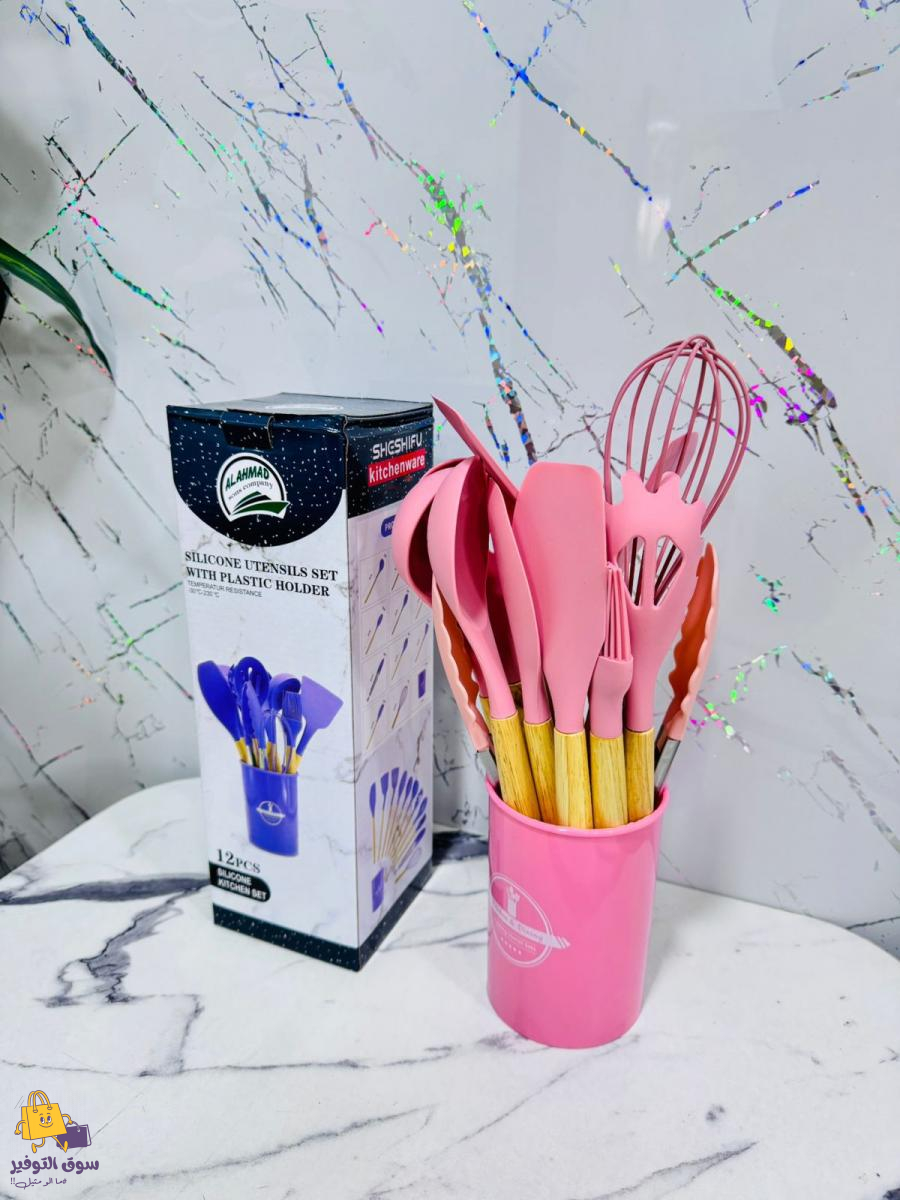 طقم مغارف مطاط 12 قطعة يد خشب